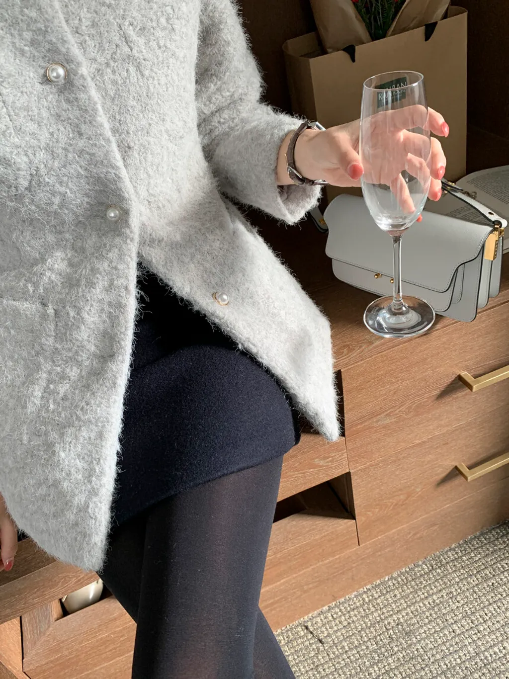 優雅羊毛細絨排釦外套,是一款獨具品味的穿搭單品。外套內以鋪棉襯裡,營造柔軟保暖的穿著感,珍珠釦飾增添細緻華麗之感。修身版型巧妙地突顯腰身曲線,給人自信的穿搭感受。