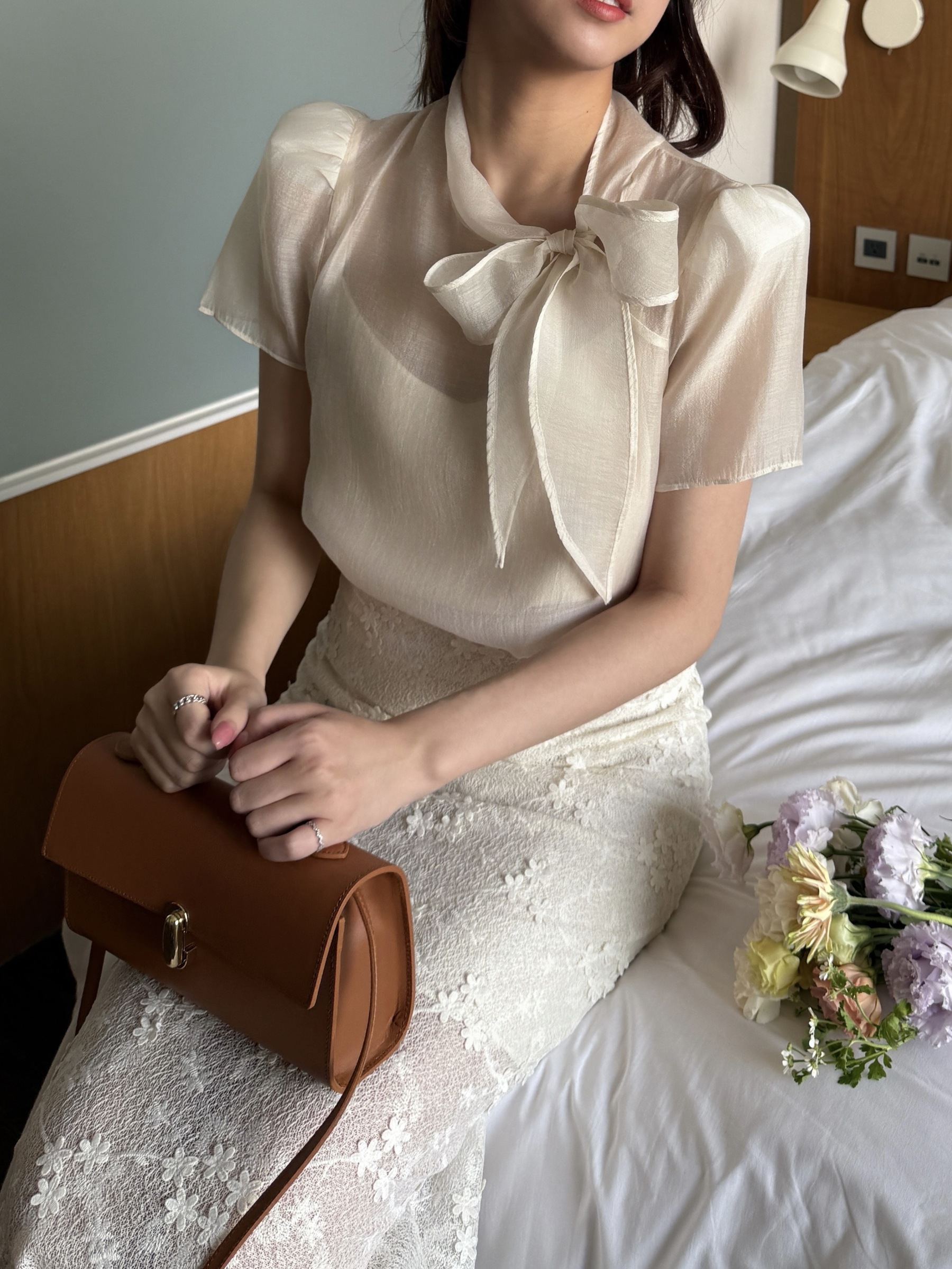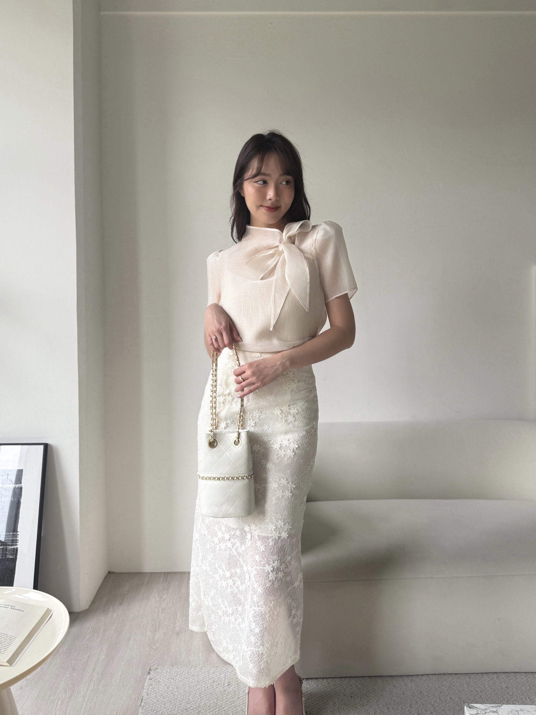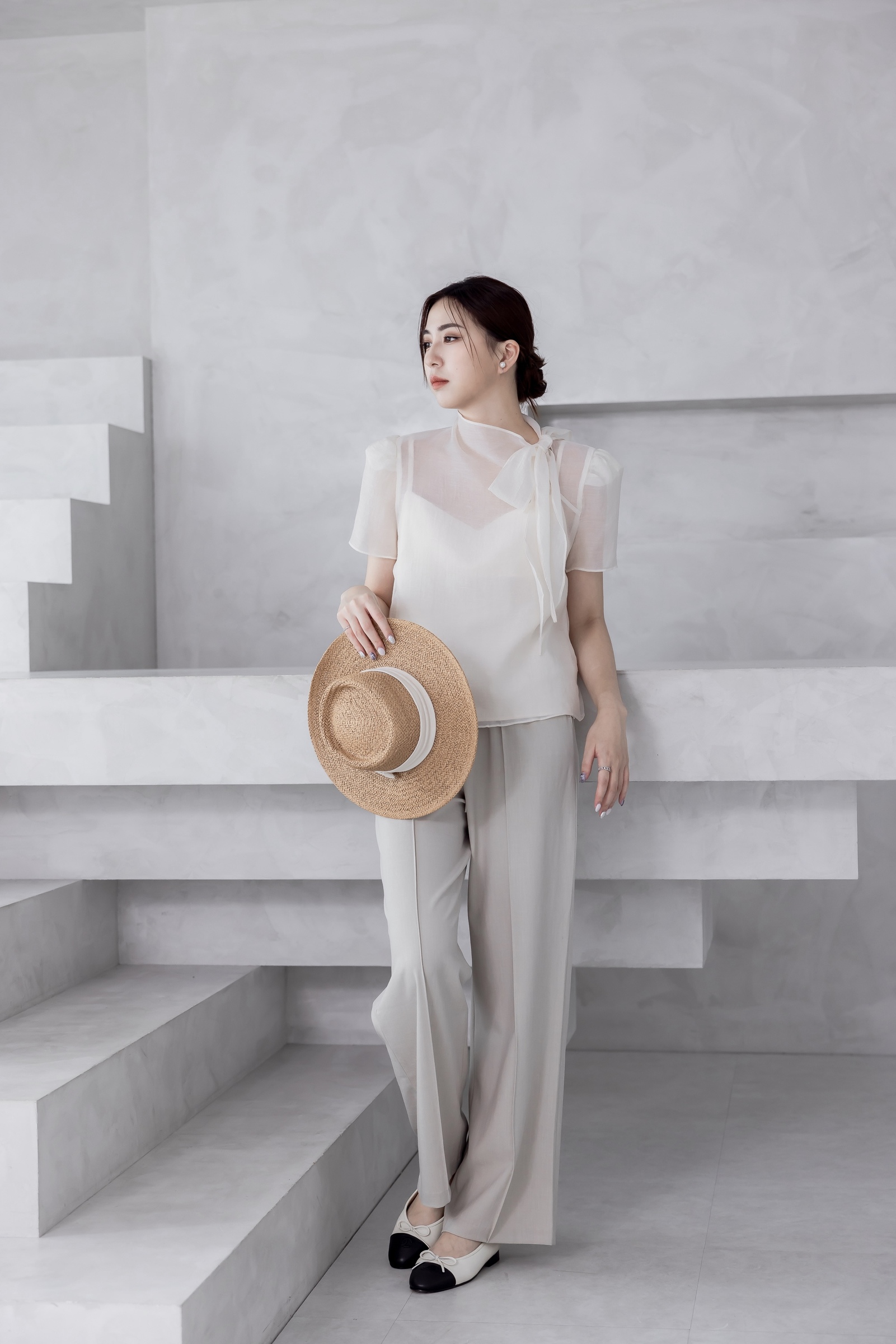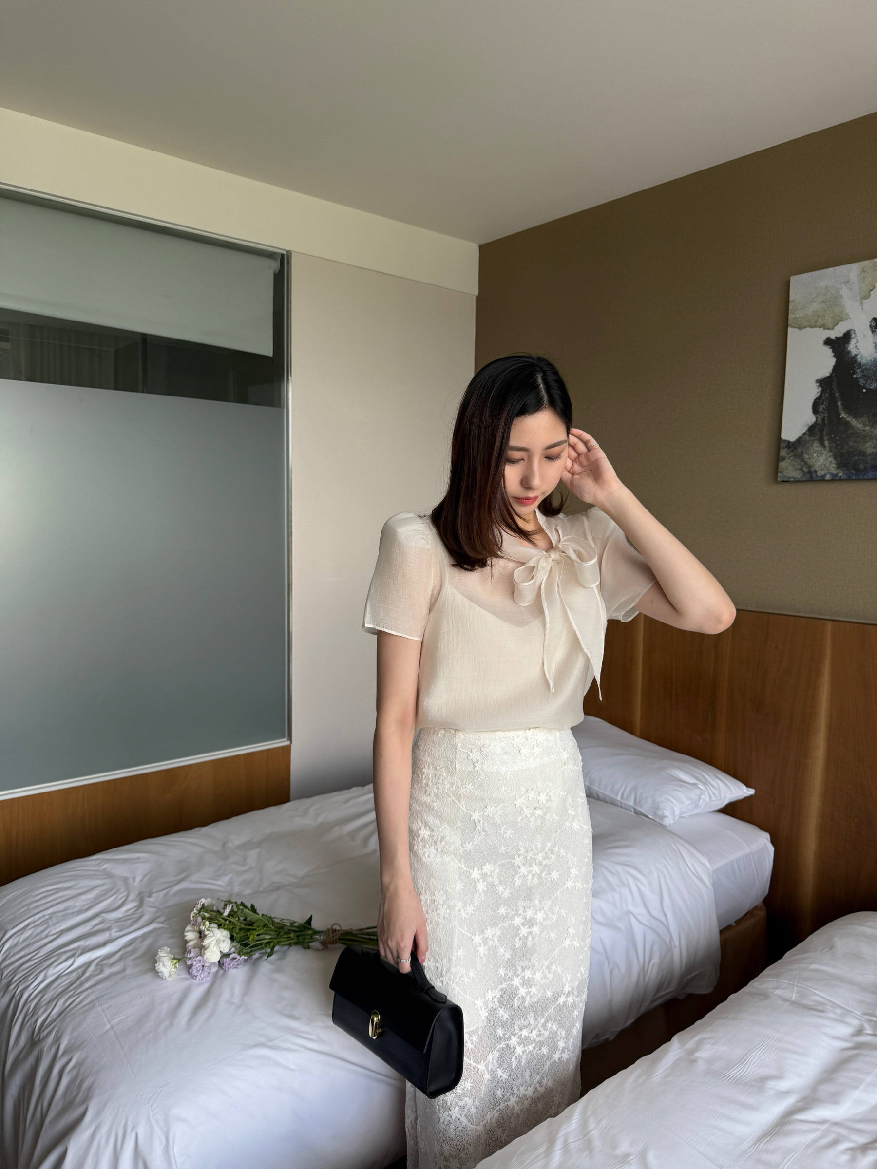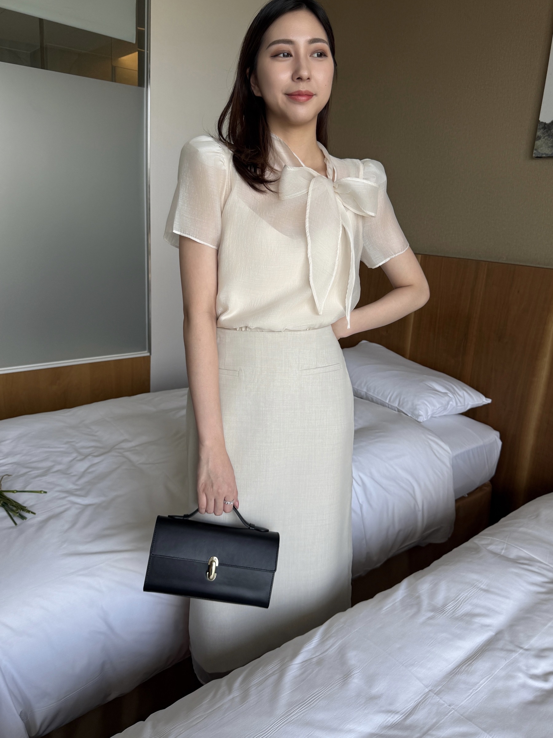 Le Calme Blouse 柔和透肌 天絲領巾雙件式上衣