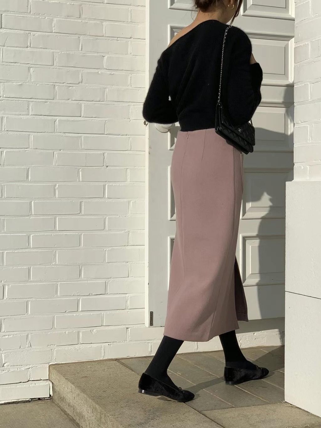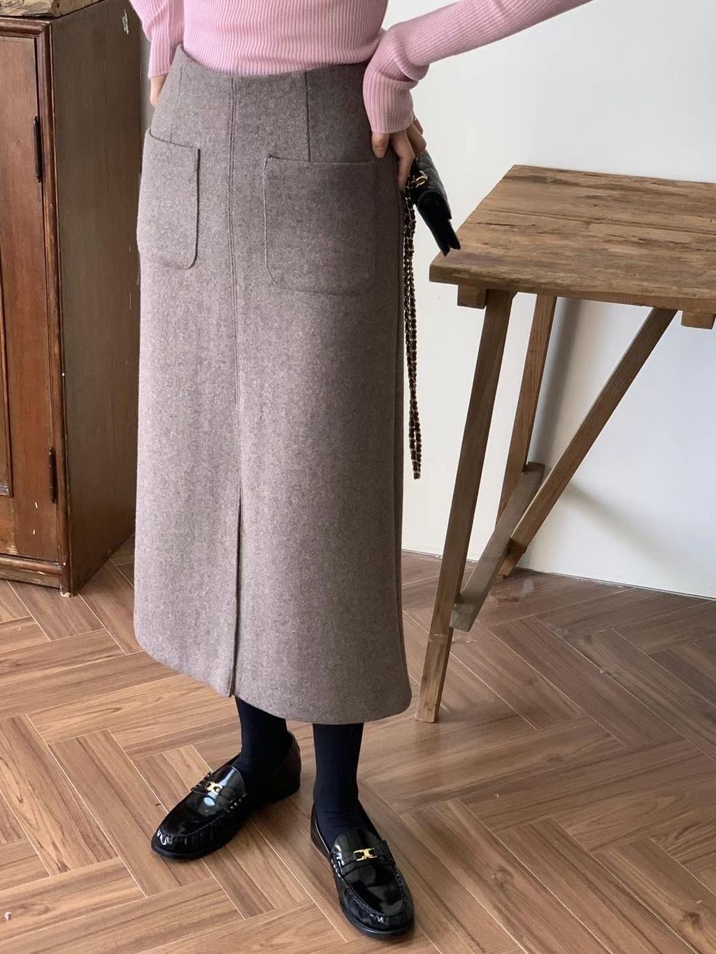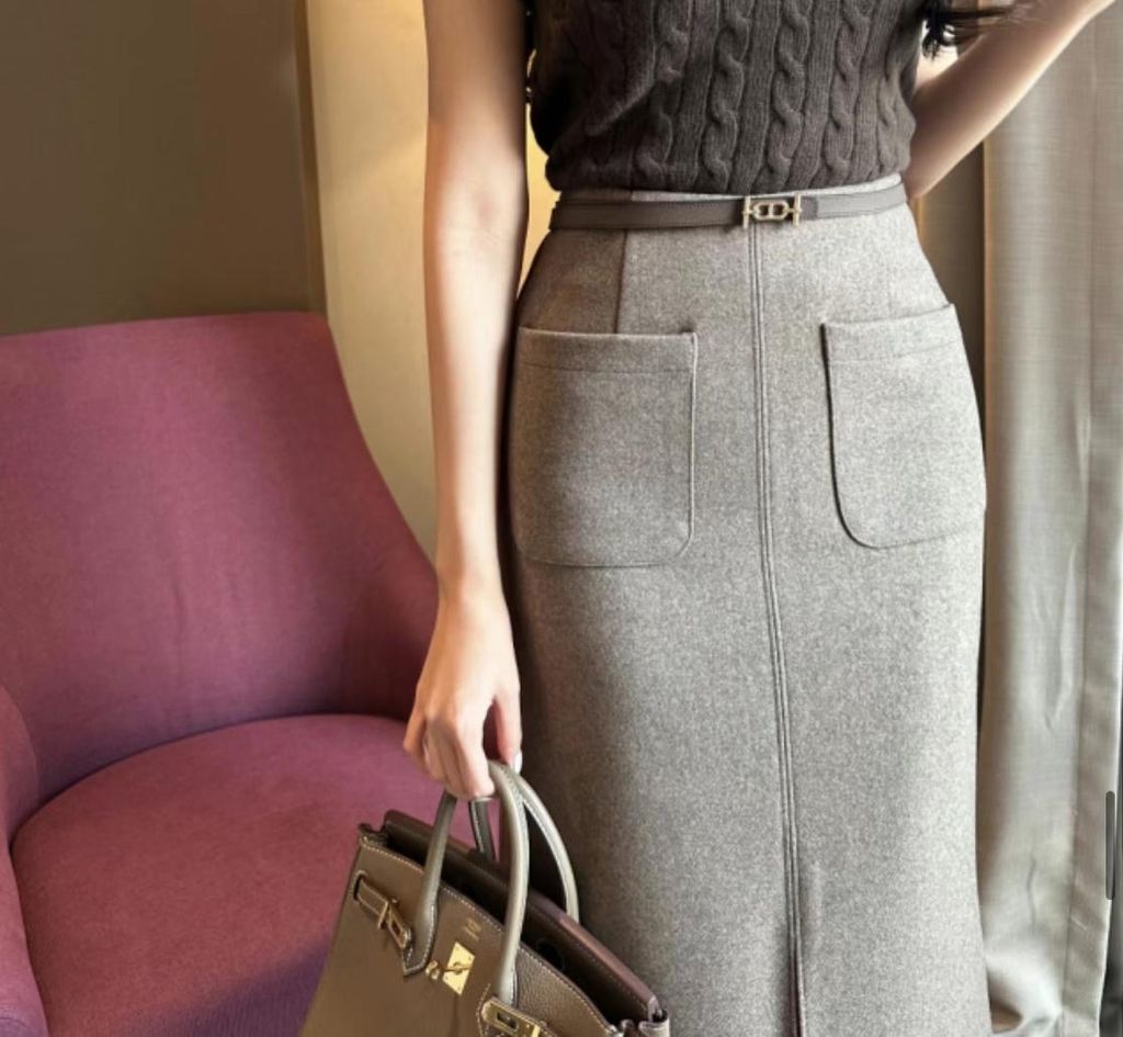 顯瘦前開衩羊毛半裙